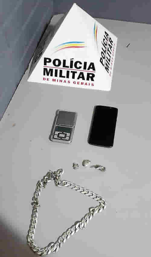 Com o auxílio de um cão farejador, foram realizadas buscas uma varredura no local, sendo encontradas três buchas de maconha e uma balança de precisão.