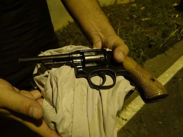 Após uma verificação no imóvel, foram abordadas outras quatro pessoas, sendo duas adolescentes. Durante as buscas, foi localizado um revólver calibre 32, dez munições do mesmo calibre, três munições calibre 40, uma balança de precisão e um pote vermelho com cocaína. Ainda foi localizado, em uma geladeira, um tatu, animal da fauna silvestre.