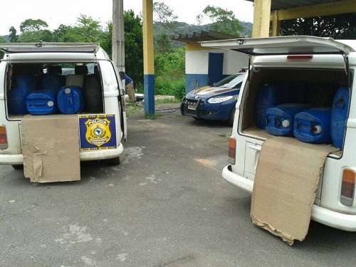 Em outra ocorrência, cerca de 2.400 litros de cachaça sem documentação fiscal e sem inspeção sanitária foram apreendidos pela PRF. A mercadoria era transportada em duas Kombis que utilizavam um desvio para não passarem em frente ao posto da PRF. A cachaça foi levada à Vigilância Sanitária que realizará os procedimentos para inutilização do produto e autuação ao proprietário.