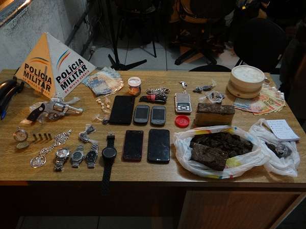 Em continuidade as buscas, foram encontradas duas pedras de crack, três buchas de maconha, um revólver calibre 32 com quatro munições intactas, uma balança de precisão, R$ 809,00 em dinheiro. Questionados, os autores assumiram a propriedade dos materiais e afirmaram que a quantia apreendida foi arrecadada na noite anterior com a venda de entorpecentes.