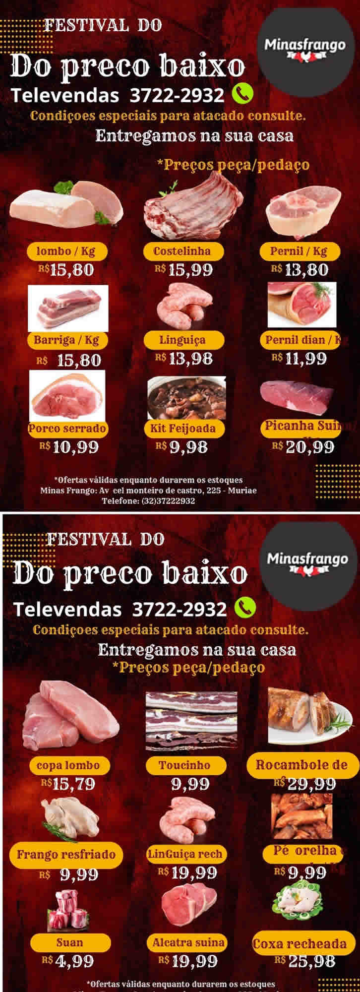 Além das promoções incríveis do açougue, o Minas Frango tem neste sábado as mais deliciosas refeições.