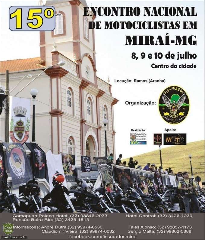 O Fissurados Moto Clube convida todos os motociclistas para o 15º Encontro Nacional de Motociclistas em Miraí, que acontece entre os dias 8 e 10 de julho.