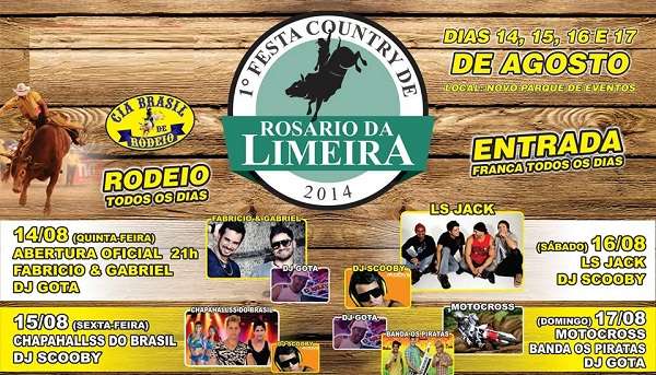 Será realizada, entre os dias 14 a 17 de agosto, a 1ª Festa Country de Rosário da Limeira.