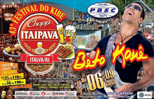 O 43º Festival do Kibe de Italva será realizado no dia 6 de setembro e este ano terá show com Beto Kauê.