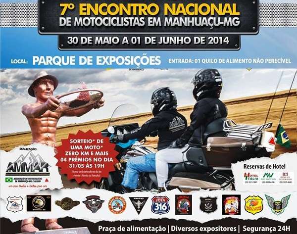Acontece neste fim de semana, de 30 de maio a 01 de junho, o 7º Encontro Nacional de Motociclistas em Manhuaçu.