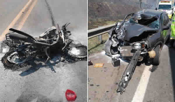 O automóvel veio a rodar na pista e atingiu um caminhão, com placas de Piraúba, que seguia logo atrás da motocicleta.