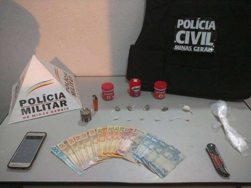 No local, após buscas, foram encontradas quatro buchas de maconha, um papelote de cocaína, duas pedras de crack, um isqueiro, um objeto utilizado para consumir crack, a quantia de R$ 460,00 em espécie e material para endola de drogas.