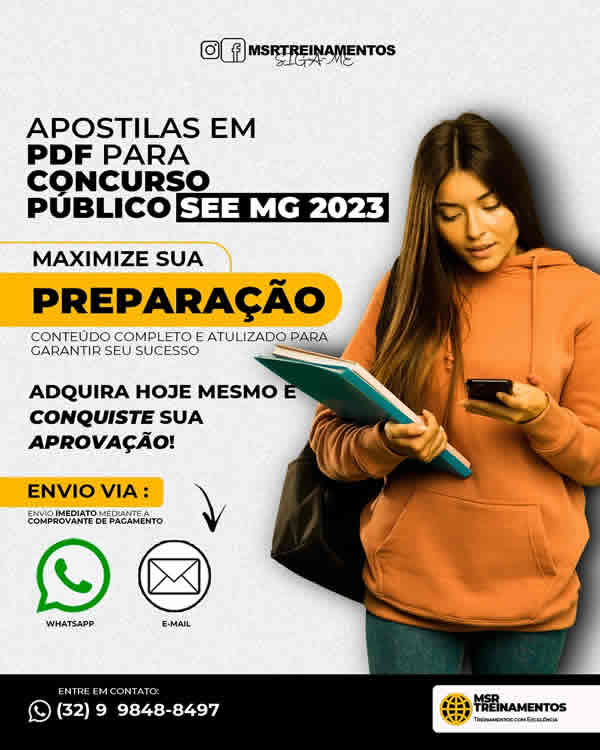 Apostilas em PDF para o concurso público da SEE MG 2023