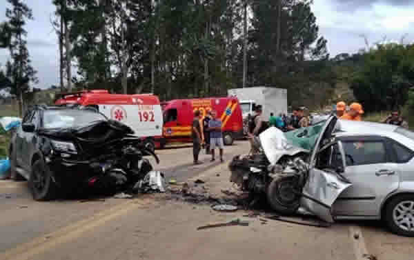 Uma batida entre dois carros deixou pelo menos três pessoas mortas na MG-133, entre Rio Pomba e Tabuleiro.