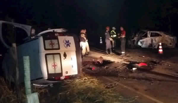 Batida entre carro e ambulância deixa dois mortos e feridos na MGC-120