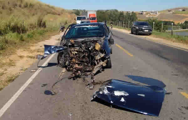 Com a colisão, o veículo Honda City, rodou na pista e caiu em um barranco a margem da rodovia, onde permaneceu parcialmente tombado.