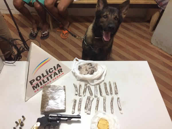 Cão farejador ajuda PM a localizar revólver e drogas em Ubá
