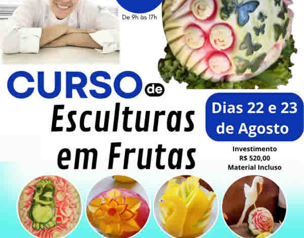 Uma oportunidade única para os amantes da gastronomia e da arte culinária chega à cidade de Ervália. Pela primeira vez, a renomada chef Beth Hotz, do Rio de Janeiro, trará seu conhecimento e técnica para a região. O curso promete ensinar aos participantes a arte de criar belas esculturas com frutas e legumes, como flores, pássaros, e até mesmo melancias personalizadas, tornando eventos e reuniões ainda mais encantadores.