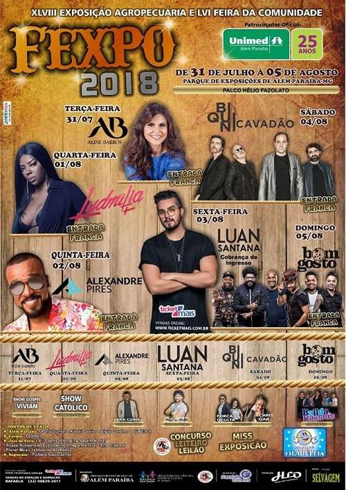 A 48ª Exposição Agropecuária de Além Paraíba, mais conhecida como FEXPO, acontece entre os dias 31 de julho a 05 de agosto.
