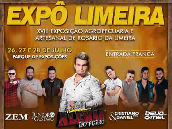Exposição de Rosário da Limeira terá shows com Banda Zem e Alemão do Forró