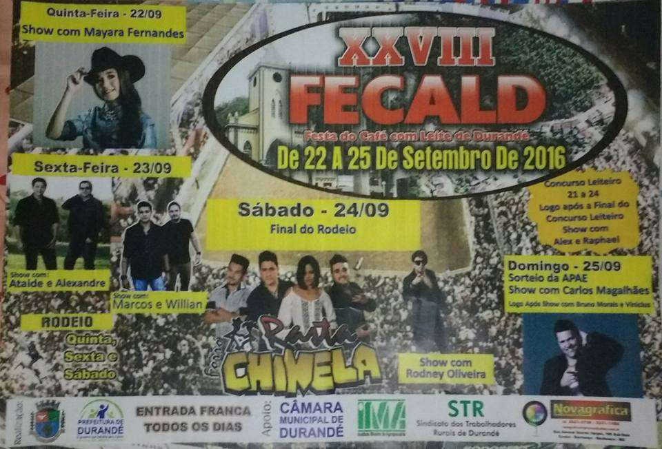 A 28ª Festa do Café com Leite de Durandé, mais conhecida como FECALD, começa nesta quinta-feira (22) e segue até domingo (25). A entrada é franca todos os dias.