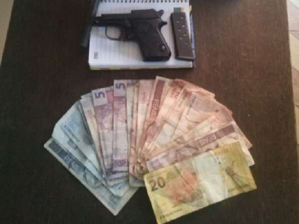 Por volta das 13h, a Polícia Militar quando em patrulhamento pela Praça das Mercês, recebeu um comunicado que estaria ocorrendo um roubo naquele momento no interior de uma loja, localizada na Avenida Governador Valadares. De imediato, a PM se fez presente e lograram êxito em localizar e abordar o autor F.J.G., 30 anos, tentando sair da loja. Ao ser abordado e submetido à busca pessoal, foi localizada na sua cintura uma pistola calibre 6.35 e dentro da sunga a quantia em dinheiro de R$ 140,00. Em contato com as vitimas, funcionarias da loja, as mesmas relataram que o autor adentrou na loja e após abaixar o capacete apontou a arma de fogo para a vítima, uma jovem de 23 anos e outra mulher de 28 anos, e anunciou o roubo dizendo que queria os celulares e todo dinheiro que estivesse na loja. Quando o mesmo acabou de recolher o dinheiro do caixa e certa quantia das bolsas das funcionárias, o autor foi abordado pelos policiais militares.
