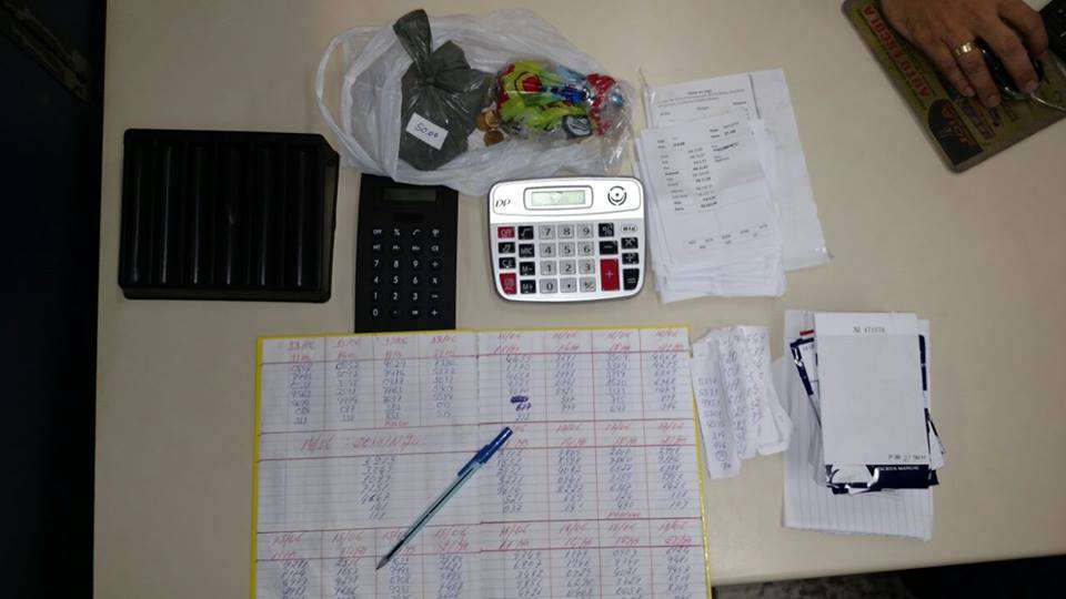 Por volta das 14h30, de posse de informações, a equipe do serviço reservado observou o autor saindo de um estabelecimento comercial pela Rua Antônio Francisco Rosa, bairro Cehab. Ele foi abordado e assumiu a autoria da contravenção, sendo encontrados 15 resultados de jogo, 35 talões novos, duas calculadoras, um porta níquel e R$ 89,00 em espécie.