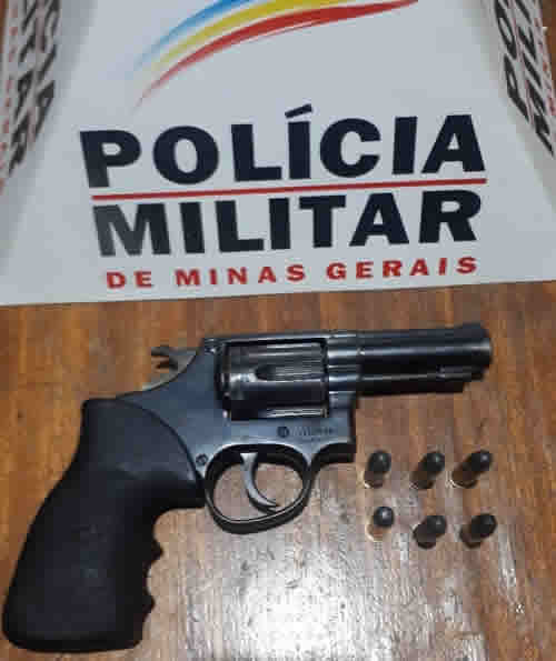 A equipe policial conseguiu visualizar o denunciado entrando no veículo dele para sair do local, momento em que o abordaram e encontraram na cintura dele um revólver calibre 38, carregado com seis cartuchos do mesmo calibre.