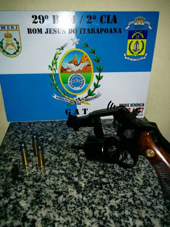 De imediato, militares procederam ao local e fizeram contato com o mesmo, que franqueou a entrada da equipe policial em sua residência. Após buscas, foi encontrado um revólver calibre 38, municiado com três munições intactas.