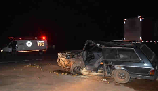 Segundo a Polícia Rodoviária Federal (PRF), o motorista de um Ford Del Rey Belina, placas de Leopoldina, colidiu com um bitrem Iveco Stralis, placas de Alfredo Chaves (ES).