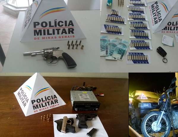 Durantes os trabalhos, os militares localizaram setenta munições calibre 32, vinte e nove munições calibre 22, trinta munições calibre 38, estando uma delas deflagrada, um revólver calibre 22, uma pistola calibre 635 e um simulacro de pistola. Também foram apreendidos R$ 2 mil em moeda corrente e R$ 300,00 em notas falsas, dinheiro de procedência duvidosa, um tablete de maconha, dois frascos de loló, duas pedras de crack e um papelote de cocaína, além de dois aparelhos celulares.