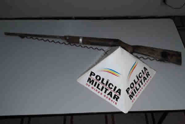 Após uma varredura pelo local, foi localizada uma espingarda sem marca e numeração, provavelmente de calibre 28. O material foi apreendido e entregue na Delegacia de Polícia para providências decorrentes.