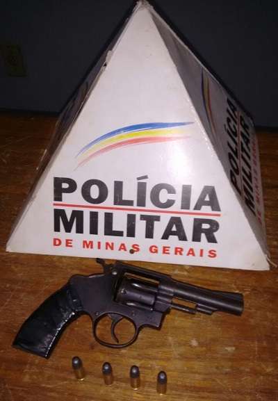 Durante buscas no veículo que eles ocupavam, o qual estava estacionado no local, foi localizado um revólver calibre 32, carregado com quatro cartuchos, dos quais, dois estavam picotados. Nenhum dos autores assumiu a propriedade da arma de fogo.