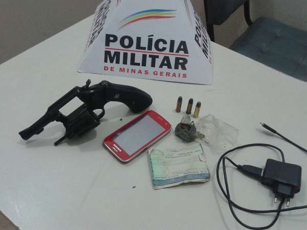 Por volta das 19h, a PM recebeu uma denúncia anônima que dava conta de que os autores G.O.P., 23 anos, e A.G.F., 18 anos, estariam planejando um assalto. De imediato, policiais compareceram à Rua Alvair Alves Valente, sendo que na residência do autor G.O.P., foram encontrados, após buscas, um revólver calibre 38, carregado com três cartuchos, uma bucha de maconha e um celular.