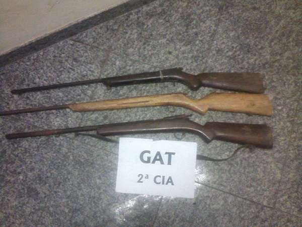 Já por volta das 19h30, a PM foi acionada e compareceu a um sitio na zona rural da cidade, onde uma conselheira tutelar estava verificando uma ocorrência de estupro de vulnerável e solicitou o apoio da polícia, pois o acusado seria agressivo e, segundo informações, possuía armas de fogo em sua residência. A guarnição procedeu a residência do acusado, 49 anos, que ao avistar os policiais empreendeu fuga, não sendo localizado. Após revista no local, foram encontradas três espingardas artesanais, sem munição e de calibre indefinido. O material foi apreendido e encaminhado à Delegacia de Polícia.