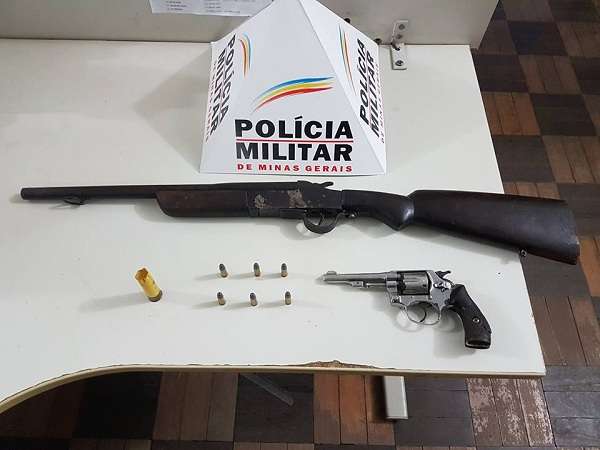 Após buscas, foi localizada uma cartucheira calibre 44 e um revólver calibre 32, além de seis munições intactas e uma deflagrada.