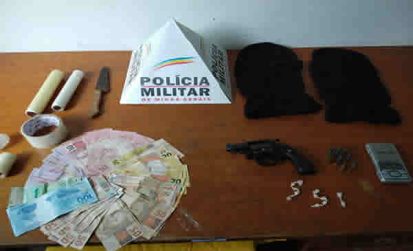 Outra ordem judicial foi cumprida em outro imóvel na mesma rua. No local, as equipes encontraram um revólver calibre 38, capacidade para cinco munições, municiado com quatro cartuchos intactos, mais quatro munições calibre 38, uma balança de precisão, intactas duas toucas ninjas, um pássaro “Coleirinho” sem anilha, R$ 1.411,00 em espécie.
