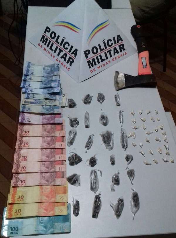 Após buscas pelo imóvel, foi localizada a quantia de R$ 209,00 e um invólucro plástico contendo 30 pedras de crack e 24 buchas de maconha.