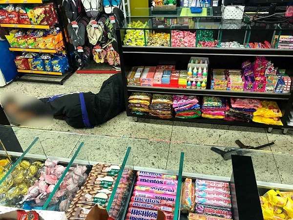 Eles anunciaram o assalto, momento em que um policial militar que estava à paisana se identificou e determinou que largassem a arma. Kevyn Bruno da Silva Fonseca, 20 anos, apontou a arma em direção ao PM, que para revidar uma injusta agressão abriu fogo contra os criminosos. Kevyn morreu no local, enquanto seu comparsa evadiu do local.