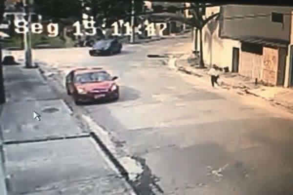 Assista ao vídeo dos bandidos fugindo e o criminoso caindo da moto: