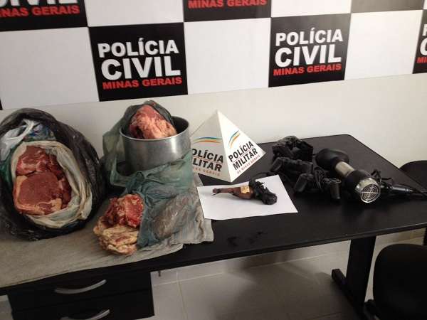Durante a operação, quatro homens, entre 19 e 25 anos, foram presos, suspeitos de integrarem uma quadrilha que estaria envolvida em furtos de gado na região. Após buscas, foram encontrados pedaços de carne bovina, acondicionados em sacolas, periféricos de vídeo game, uma lanterna e um simulacro de arma de fogo feito em madeira. Uma mulher de 46 anos, mãe de um dos autores, também foi presa por desacatar os policiais.