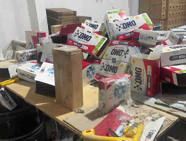 As equipes monitoraram um galpão no bairro Colibri, onde integrantes da organização criminosa foram flagrados envasando sabão em pó de baixa qualidade em embalagens da marca Omo. A estrutura no local incluía balanças, pistolas de cola quente, paletes com caixas lacradas, etiquetas com código de barras e centenas de embalagens prontas para distribuição.