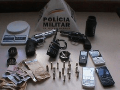 A Polícia Militar recebeu informações que o trio teria recebido um carregamento de drogas. No local, os policiais, abordaram o adolescente de 17 anos e encontraram no imóvel R$ 345,00, dois revólveres calibre 38, com a numeração raspada, ambos carregados com seis cartuchos do mesmo calibre, quatro munições calibre 38, um rádio comunicador, maconha, três aparelhos telefones celulares e uma balança de precisão.