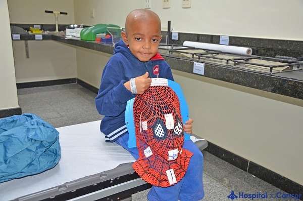 “Vitor Hugo cativou a todos! No primeiro dia de tratamento, ele veio todo fantasiado de Homem Aranha, daí surgiu a ideia da máscara de Homem Aranha”, contou a técnica do setor. A máscara de termoplástico, que todos os pacientes que tratam tumores de cabeça e pescoço usam durante as sessões, aos poucos foi se transformando na máscara do Homem Aranha, o super herói preferido do menino. As técnicas em radiologia, Joanita e Vania, em parceria com o setor de Humanização do hospital, conseguiram a tinta antialérgica e pintaram a máscara. De acordo com o coordenador do setor de Humanização, João Motta, ações como essa são de extrema importância no quesito transversalidade, pois amplia o grau de contato e da comunicação entre os colaboradores reconhecendo assim que as diferentes especialidades e práticas podem conversar com a experiência daquele que é assistido, no caso, nosso Homem Aranha Vitor Hugo.