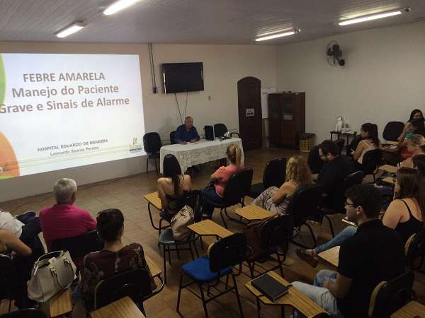 A Prefeitura de Muriaé está promovendo a capacitação “Manejo Clínico de Febre Amarela” para levar aos médicos da rede pública mais informações sobre as principais características da doença que podem ser confundidas com outras epidemias. A primeira reunião aconteceu na última quinta-feira (1), na Secretaria Municipal de Saúde, com palestra realizada pelo clínico Mateus Simão. A iniciativa pretende tratar os pacientes com suspeita da doença de forma interdisciplinar, dando atendimento especializado para diagnosticar em tempo recorde a doença infecciosa que pode até ser fatal.
