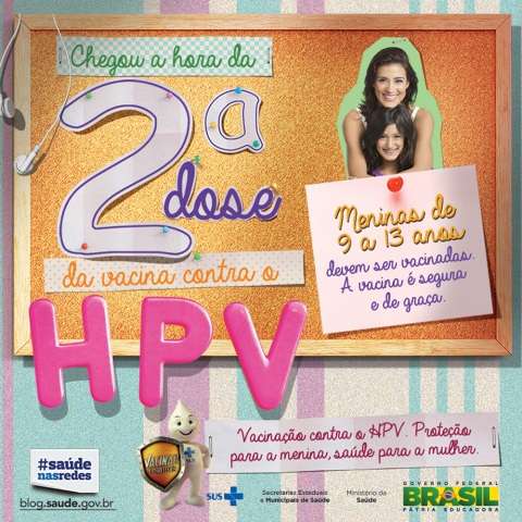 Chegou o momento de vacinar novamente as meninas de 9 a 11 anos com a vacina quadrivalente contra Papiloma Vírus Humano (HPV). As adolescentes que já tomaram a primeira dose em março de 2015, devem voltar aos postos de saúde para o reforço.