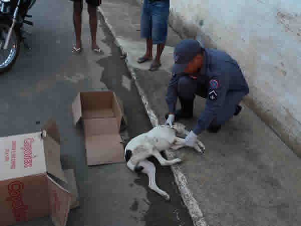 Bombeiros resgatam cachorra que caiu de prédio em Muriaé
