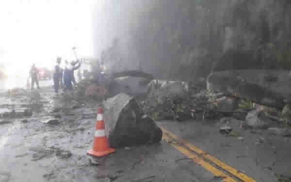 Deslizamento de pedras causa interdição parcial da BR-116, em Teresópolis